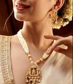 • Product Id : 4345512 • Package Details : 1 Necklace / 2 Earrings • Type : Necklace Sets • Look : Traditional • Jewellery Work : Gold Plated • Color : Multicolor • Plating : Antique Gold • Base Material : Copper • Pearl Type : Plastic • Pearl Shape : Round • Piercing : Yes • Height : 26.0 • Width : 150.0 • Care : Just Avoid Direct Contact With Perfumes Or Any Chemical • Setting : Invisible • Finish : Matte Payments [+]