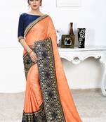 Orange Zari Embroidered Siroski Stone Border Silk Jacquard Party Wear Saree With Blouse Piece