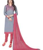 Women'S Grey Embroidered Cotton Dress Material Having Pink Color Chudidar Bottom Of Cotton Fabric And Pink Color Dupatta Of Nazneen Material With Fancy Grey Colour In Glace Cotton Najmeen Fabric With Work Of Heavy Multi Embrodierey And Fancy Border With Embrodiered Blouse|| Images Are For The Referance Purpose Only, Color Of The Actual Product May Little Vary From The Image Due To Screen Resolution