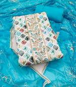 Women'S Multi Unstitched Thread Embroidery Digital Print Handwork Pure Cambric Cotton Dress Material Having Sky Blue Color Unstitched Bottom Of Rayon Fabric And Sky Blue Color Dupatta Of Nazneen Material With Amazing Multi Colour In Pure Cambric Cotton Rayon Nazneen Fabric With Work Of Heavy Thread Embroidery Digital Print Handwork And Fancy Border With Designer Embroidered Dupatta|| Images Are For The Referance Purpose Only, Color Of The Actual Product May Little Vary From The Image Due To Screen Resolution