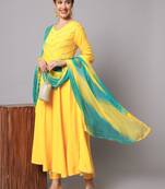 • Product Id : 4235274 • Package Details : 1 Kurta 1 Pant 1 Dupatta • Type : Kurta Suits • Region : Rajasthan • Occasion : Casual • Fabric : Rayon • Work : Woven • Look : Traditional • Sleeve : Quarter Sleeve • Neck Style : Round Neck • Color : Yellow • Stitching : Stitched • Length : 48 Payments [+]