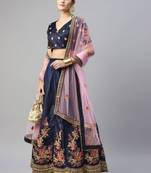 • Style : A Line Lehenga • Fabric : Silk • Work : Embroidered • Color : Blue Blouse Details