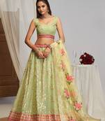 • Fabric : Net • Work : Embroidered • Color : Sea Green • Length : 2.25 Lehenga Details