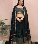 Step Into The Spotlight With This Gorgeous Green Lehenga Choli Crafted From Soft Georgette Fabric. The Ensemble Shines With Intricate Thread Embroidery And Dazzling Sequin Detailing Throughout.