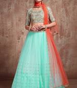 Shine Bright in this Exquisite Blue Party Wear Lehenga Choli featuring Soft Net Lehenga & Art Silk Blouse Paired with Soft Net Dupatta.Take Center Stage wherever you go adorning our Mesmerizing collection of Lehenga Choli. This Stunning Apparel features Soft Net Lehenga & Art Silk Blouse. It Can be made upto Maximum size of 42 inches. This Beautiful Lehenga Choli comes with Pure Soft Net Dupatta. This sophisticated and fashionable Apparel is embellished with Sequins, Zari & Thread Work which will surely add Grace to the Whole Dress. This Ethnic Wear is a must have in every women Collection.