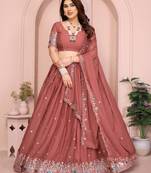 • Fabric : Georgette • Work : Embroidered • Color : Salmon • Length : 2.25 Lehenga Details