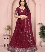 • Fabric : Georgette • Work : Embroidered • Color : Maroon • Length : 2.25 Lehenga Details