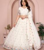 • Fabric : Georgette • Work : Embroidered • Color : White • Length : 2.25 Lehenga Details