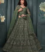 • Fabric : Net • Work : Embroidered • Color : Olive • Length : 2.3 Lehenga Details