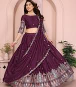 • Fabric : Georgette • Work : Embroidered • Color : Wine • Length : 2.25 Lehenga Details