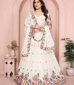 • Fabric : Georgette • Work : Embroidered • Color : White • Length : 2.25 Lehenga Details