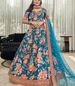 • Fabric : Organza • Work : Embroidered • Color : Blue • Length : 2.25 Lehenga Details