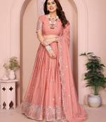 • Fabric : Georgette • Work : Embroidered • Color : Peach • Length : 2.25 Lehenga Details