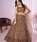 Brown Sequins And Thread Embroidered Soft Net Lehenga Choli