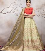 • Fabric : Silk • Color : Beige • Work : Jacquard • Length : 2.5 Lehenga Details