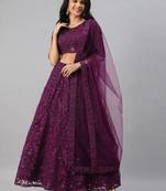 Let your elegance reflect and get compliments with this beautiful purple color lehenga choli made of heavy net embellished by a thread, sequins embroidered.