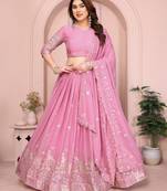 Mesmerizing Baby Pink Sequins And Thread Embroidered Star Georgette Indian Designer Lehenga Choli Dress