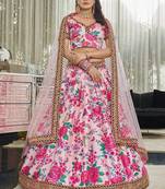 Lighat Pink Dori And Sequins Embroidered Art Silk Floral Lehenga For Wedding