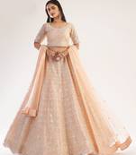 • Fabric : Net • Color : Peach • Work : Thread Embroidery • Length : 2.25 Lehenga Details