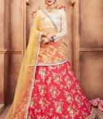 Pink, Biege And Orange Thread, Zari And Sequins Embroidered Silk Semi Stitched Lehenga Choli For Wedding