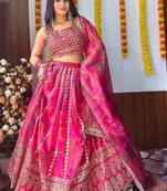 • Style : A Line Lehenga • Fabric : Organza • Work : Printed • Color : Pink Blouse Details