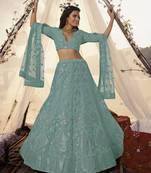 • Fabric : Net • Work : Embroidered • Color : Turquoise • Length : 2.5 Lehenga Details