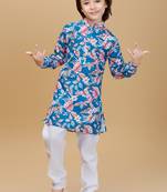 • Product Id : 4646500 • Package Details : 1 Kurta / 1 Pyjama • Type : Kids Kurta Pyjama • Region : Other • Work : Printed • Type : Floral Print • Look : Traditional • Sleeve : Full Sleeve • Neck Style : Chinese Collar Kameez • Bottom Fabric : Cotton • Bottom Color : White • Top Color : Blue • Top Fabric : Cotton Silk • Bottom Style : Pyjama • Stitching : Stitched • Gender : Boy Payments [+]