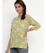 • Product Id : 3806886 • Package Details : 1 Top • Type : Tunics • Fabric : Cotton • Work : Printed • Sleeve : Quarter Sleeve • Neck Style : V Neck • Color : Yellow • Stitching : Stitched • Length : Calf Length Payments [+]