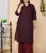 Women Plus Size Maroon Floral Printed Cotton Kurta With Sharara