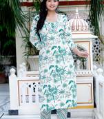 • Product Id : 4468851 • Package Details : 1 Kurta / 1 Palazzo • Type : Readymade Suits For Women • Region : India • Type : Floral Print • Look : Traditional • Sleeve : Quarter Sleeve • Neck Style : V Neck • Fabric : Cotton • Color : Green • Work : Floral Print • Stitching : Stitched Payments [+]