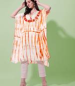 Orange Off White Shibori Print Mirror Gotta Patti Rayon Kaftan Kurta