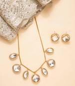 Delicate Transparent Kundan Stone Necklace With Small Pendant & Matching Earrings