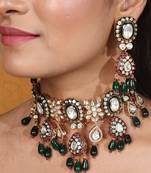 This stunning choker is a testament to the exquisite craftsmanship of Jaipur Jadau work, featuring beautifully arranged Kundan stones that radiate elegance. The intricate design of this piece not only enhances the neckline but also adds a regal touch to any outfit. Perfect for festive occasions or special events, this choker effortlessly blends traditional artistry with modern sophistication. Ideal for brides and those who appreciate unique jewelry, this choker is a timeless addition to your collection, ensuring you make a statement wherever you go.