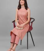 • Product Id : 4119344 • Package Details : 1 Kurti/ 1 Pant • Type : Kurta Sets • Occasion : Festive • Fabric : Cotton • Work : Printed • Type : Golden Print • Look : Fashion • Sleeve : Sleeveless • Neck Style : Boat Neck • Color : Pink • Stitching : Stitched Payments [+]