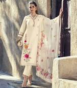 Cream Viscose Silk Fabric Flowers Embellished Embroidered Kurta With Pant & Dupatta Stitched
