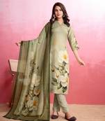 Dark Green American Crepe Floral & Leaf Straight Kurta With Pant & Printed Dupatta Stitched