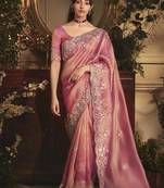 Designer Pink Tissue Organza Saree With All Over Butta Work & Heavy Stone Embellished Border