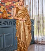 Exquisite Designs With This Mustard Simar Silk Zari Woven Saree(