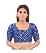 Royal Blue Brocade Printed Readymade Saree Blouse