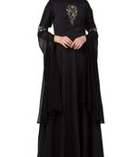Black Modern, Modest And Elegant Dress With Hand Work On Yoke And Sleeves Comes With A Free Matching Stole.