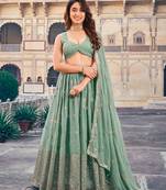 This sage green lehenga for women is a perfect pick for modern bridesmaids and festive divas who love a mix of tradition and contemporary elegance.Specifications [-]