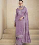 Lavender Sequine Embroidered Work Vichitra Silk Kurta Palazzo With Dupatta. Stitched