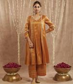 -Anarkali Kurta In Orange Tissue Fabric With Multiple Panels.