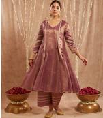 -Anarkali Kurta In Purple Tissue Fabric With Multiple Panels.