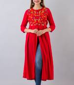 • Product Id : 4253778 • Package Details : 1 Kurta • Type : Kurtis • Region : India • Occasion : Casual • Fabric : Rayon • Work : Embroidered • Look : Fashion • Sleeve : Quarter Sleeve • Neck Style : Round Neck • Color : Red • Stitching : Stitched • Length : 48.0 • Side Slit : Yes Payments [+]
