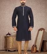 • Product Id : 4184698 • Package Details : 1 Kurta ,1 Pajama • Type : Kurta Pajama • Work : Embroidered • Sleeve : Full Sleeve • Neck Style : Round Neck • Bottom Fabric : Cotton • Top Color : Blue • Top Fabric : Art Silk • Stitching : Stitched Payments [+]