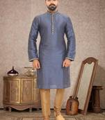 • Product Id : 4184699 • Package Details : 1 Kurta ,1 Pajama • Type : Kurta Pajama • Work : Embroidered • Sleeve : Full Sleeve • Neck Style : Round Neck • Bottom Fabric : Cotton • Top Color : Grey • Top Fabric : Art Silk • Stitching : Stitched Payments [+]