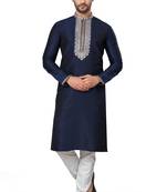 • Product Id : 4483579 • Package Details : 1 Kurta 1 Pajama • Type : Kurta Pajama • Fabric : Silk • Work : Woven • Type : Resham Embroidery • Look : Designer • Sleeve : Full Sleeve • Neck Style : Asymmetrical Neck Kameez • Color : Blue • Bottom Fabric : Cotton • Bottom Color : White • Top Color : Blue • Top Fabric : Silk • Bottom Style : Pyjama • Stitching : Stitched Payments [+]