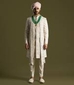 Cream Raw Silk Embroidered Sherwani Set