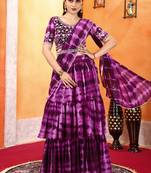 Ready To Wear Dark Wine Shibori Printed Ruffled Stitched Saree Moti Lace Embroidered Sitched Blouse And Waist Belt